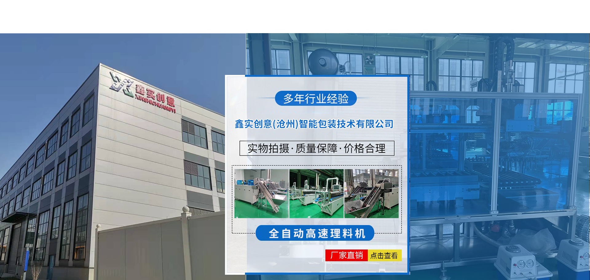 鑫實創意(滄州)智能包裝技術有限公司成立于2018年。專業從事食品,藥品,建材行業的生產線自動化設計、改造、制造、銷售等業務,是一家實力雄厚的高科技企業,同時獲得了國家高新技術企業稱號。